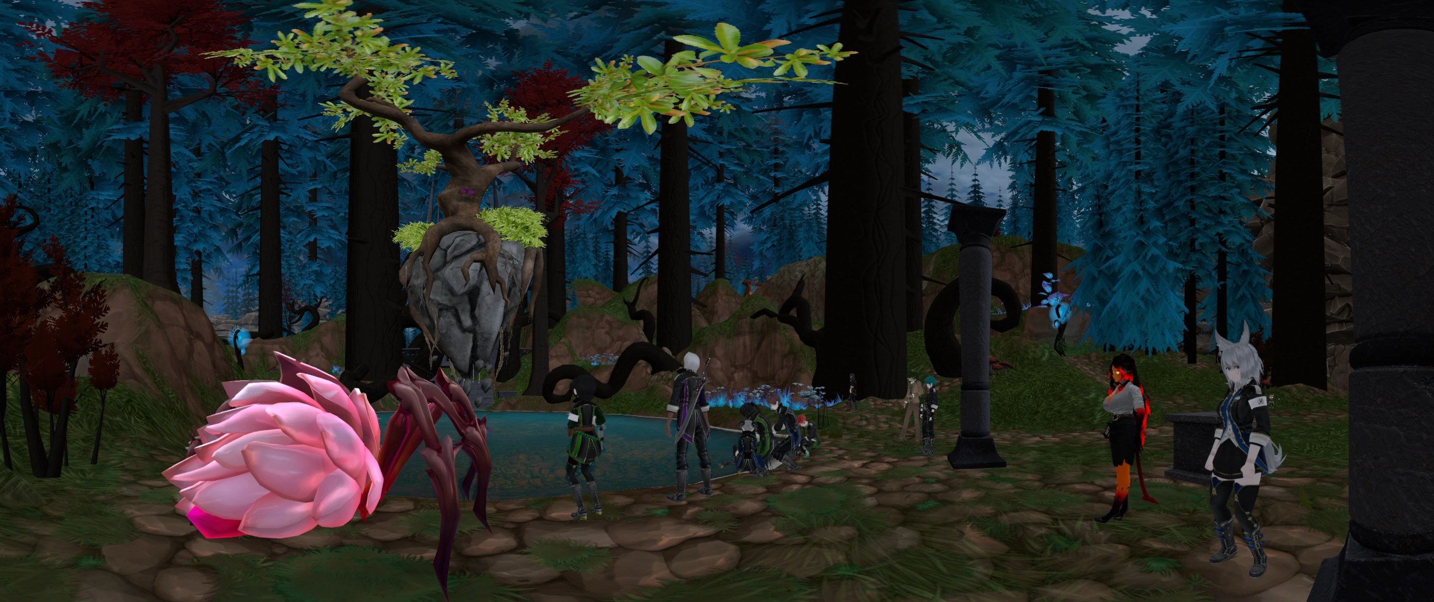 The students later revisited the camp, which had been redubbed 'Fort Cari' in their second year at the Academy. Since their first mission the site has been built up greatly, with stone walls, gatehouses and towers, many houses, a farm, medical building, and a tavern. The Dryad now resides within the town sporadically while he works to cleans his Grove. In the center of the town in a stone statue and fountain of Cari in a mermaid form, with water pouring from her hands. A touching, if bittersweet, tribute to the fallen student.