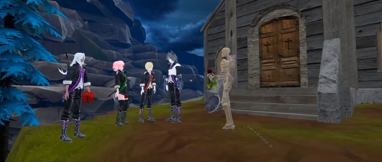 The squad composed of Arbor, Victor, Ryder and Zackary found a church where Steve welcomes them and points them to a very particular boar that seems to have a pouch and a stamina potion but because of their past experiences they don't take the things and return back to the camp informing the other students about their discoveries.