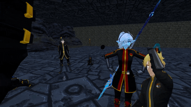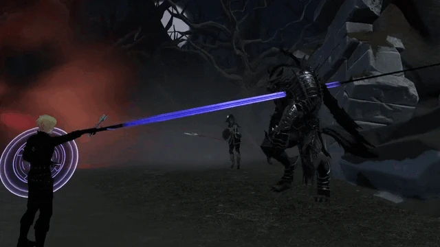 Leneth summons a Shadow Jack, a weapon that is part double axe, spear, and mace.