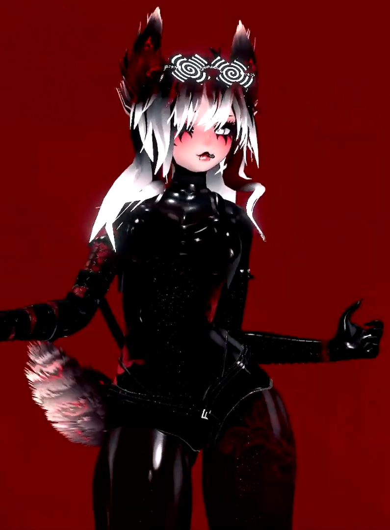 Nebride, or Neb for short, is a slime foxgirl vtuber and VRChat streamer from Norway. Her streams involve dancing (or "wiggling") and vibing to a wide variety of music or playing horror games and VRChat horror maps. For VR, she has 11-point full-body and eye/face tracking. A prominent aspect of her streams is the frequent and sometimes radical avatar changes she does, whether on her own volition or at her chat's request, explained by her lore as an ability she has as a shape-shifting slime creature. Many of her forms though involve outfits with a generally black, shiny, latex/rubber/PVC aesthetic. Her streams usually also have song requests open for anyone to provide a "communal playlist" of songs with days having different vibes, such as EDM, phonk, trap, hip hop, metal or chill.