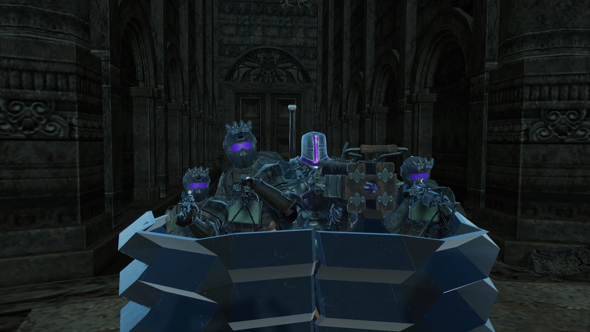 Additionally, Iota-9 is also equipped to handle anomalies of spiritual or occult origin and will deal with cults on a regular basis. The specialists for the occult are usually seen wielding a longsword and wearing medieval knight armor pieces on top of their combat gear.