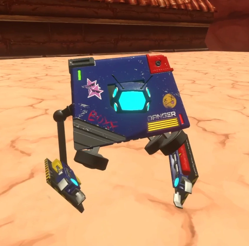 For vigorously patrolling the perimeters of Scrap Town and keeping its inhabitants updated with events and current ongoings he has earned the reputation and nickname of being their "sentry" or "guardian angel".